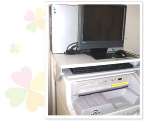 当院のレントゲンには、CR(デジタル画像形成装置)を導入しています。撮影から現像までの時間が短いため、患者様をお待たせしないことがメリットです。そして何より解像度が良いので、従来のレントゲンでは見分けることが難しかった小さな病変も、はっきりと映し出すことが可能となります。